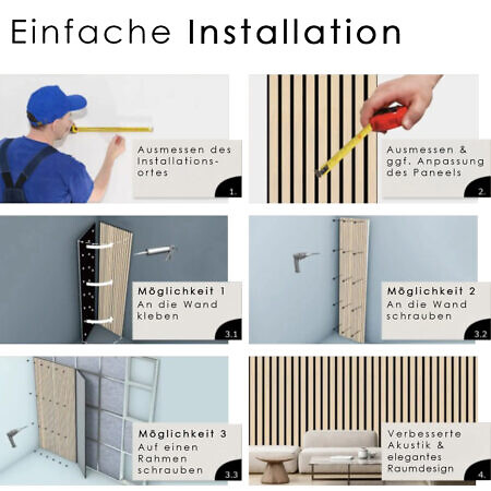- Lieferumfang: 4 Paneele (für 1,28 m² Wandfläche)