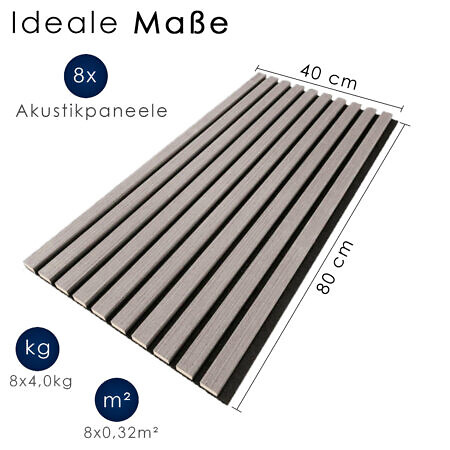 Akustikpaneel Suono Eiche Grau 8er Set
