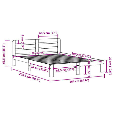 - Abmessungen Bettrahmen: 203,5 x 164 x 65,5cm (Länge x Breite x Höhe)