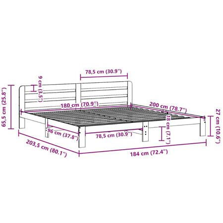 - Abmessungen Bettrahmen: 203,5 x 184 x 65,5cm (Länge x Breite x Höhe)