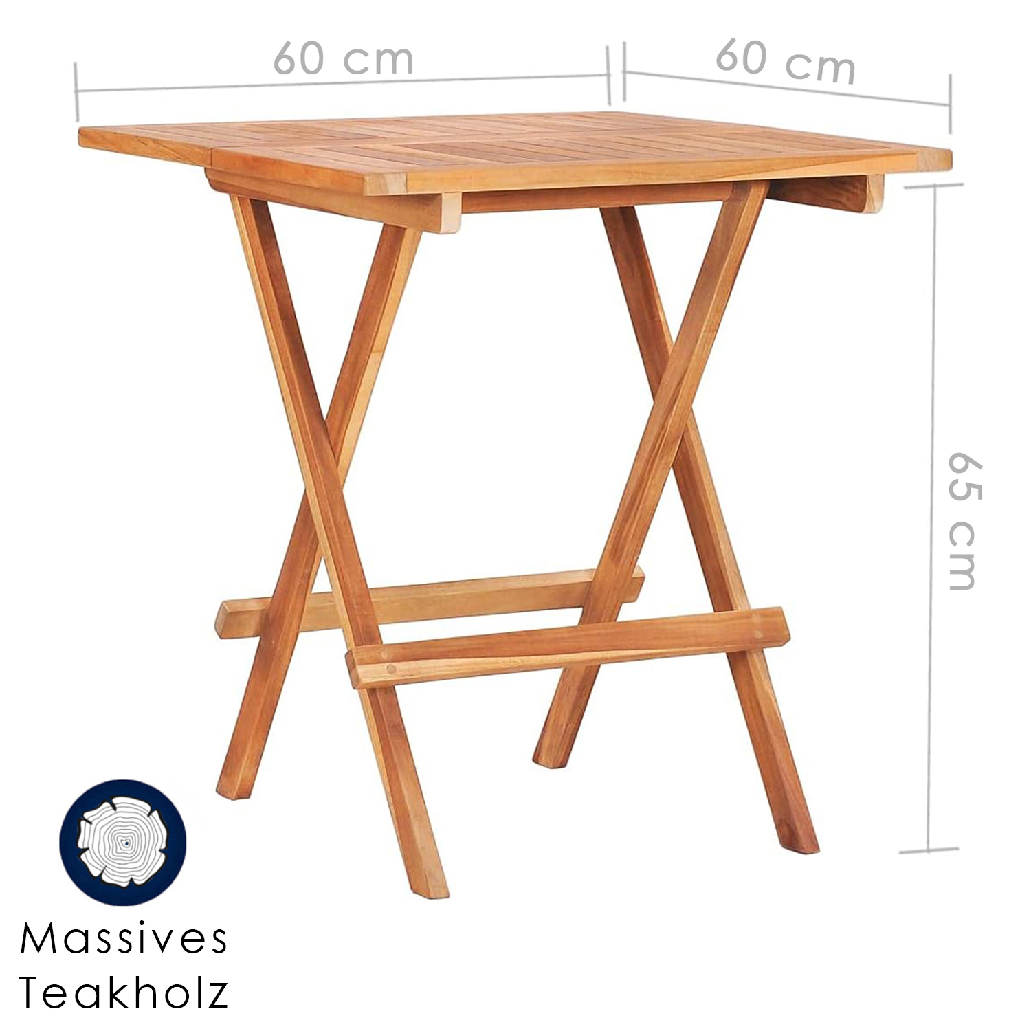Gefertigt aus fein geschliffenem, massivem Teakholz, überzeugt das Set durch hohe Stabilität, Witterungsbeständigkeit und zeitlose Optik. Die glatte Oberfläche verleiht den Möbeln eine edle Haptik und erleichtert zugleich die Reinigung. Dank des klappbaren Designs lassen sich Tisch und Stühle bei Bedarf platzsparend verstauen – ideal für kleine Außenflächen oder flexible Nutzung im Innenbereich.